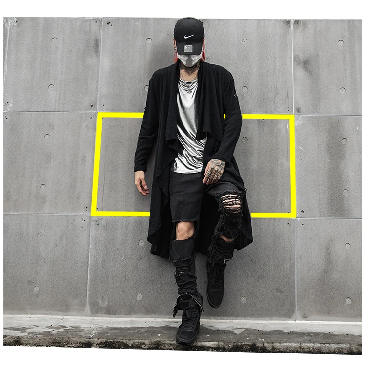 . (15% Rabatt) Kaufen Billig Frühling Sommer Koreanischen Stilvolle Grau Schwarz Extra lange pop punk strickjacke leinen shirts für männer Preise Online.