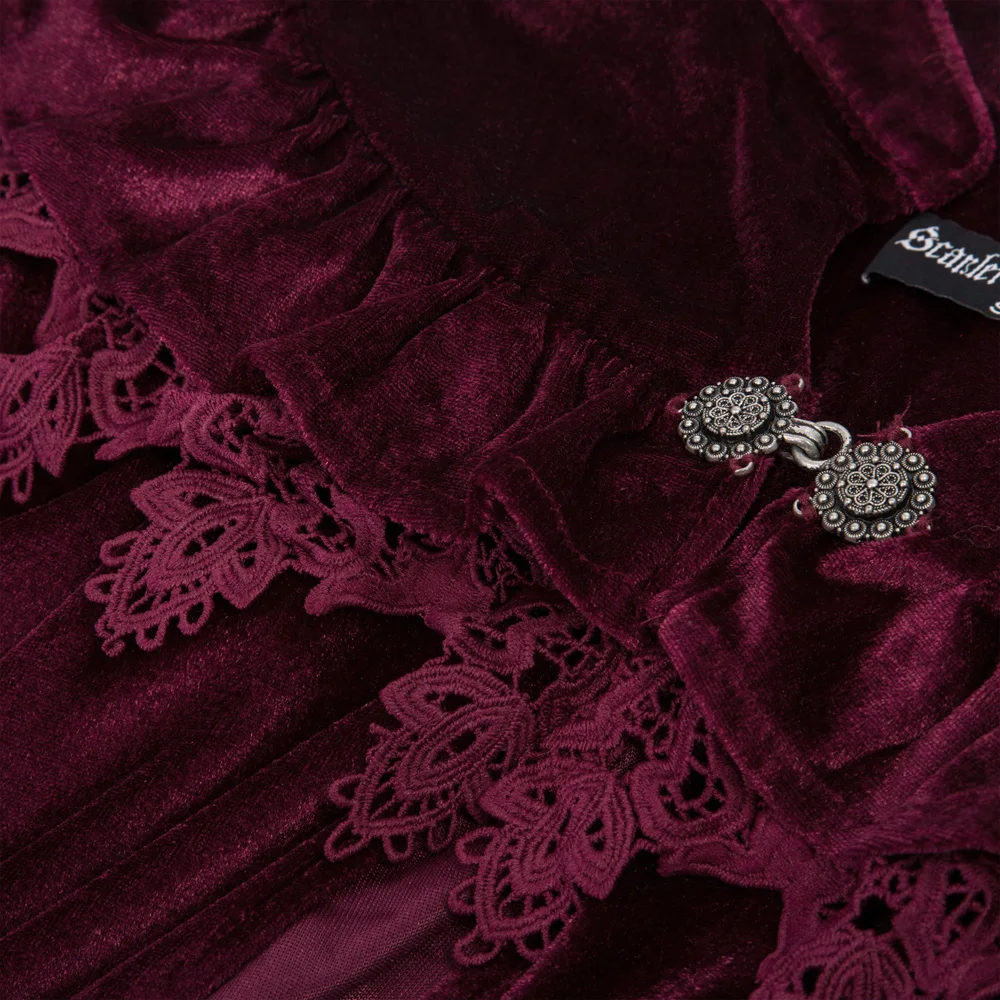 Special Offer Vintage Frauen tops retro club abend party Gothic Steampunk Renaissance Lolita Stehen Kragen High Low Samt Cape lady weibliche Discount 35% Today!