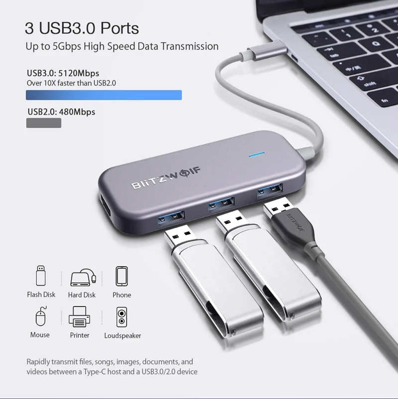 . (35% Rabatt) Günstige Kaufen BlitzWolf BW TH5 7 in 1 USB C Daten Hub mit 3 Port USB 3.0 TF Kartenleser USB C PD Lade 4 K Display für MacBooks für iPad Preise Online.