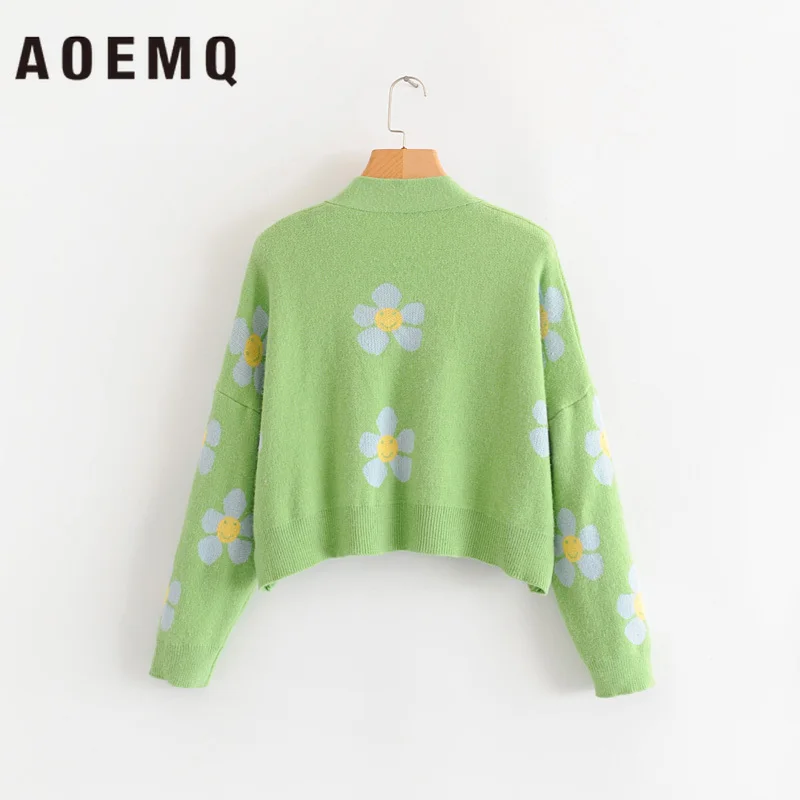 Special Offer AOEMQ Mode Winter Pullover Nette Licht Grün Symbol Leben Frühling Pullover mit Blume Druck Frauen Tops Weihnachten Pullover Discount 44% Today!